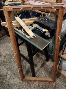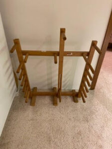 Inkle loom – Leclerc solid maple wood warping frame, instruction book and 2 rulers (5” and 10”).  $200.00.